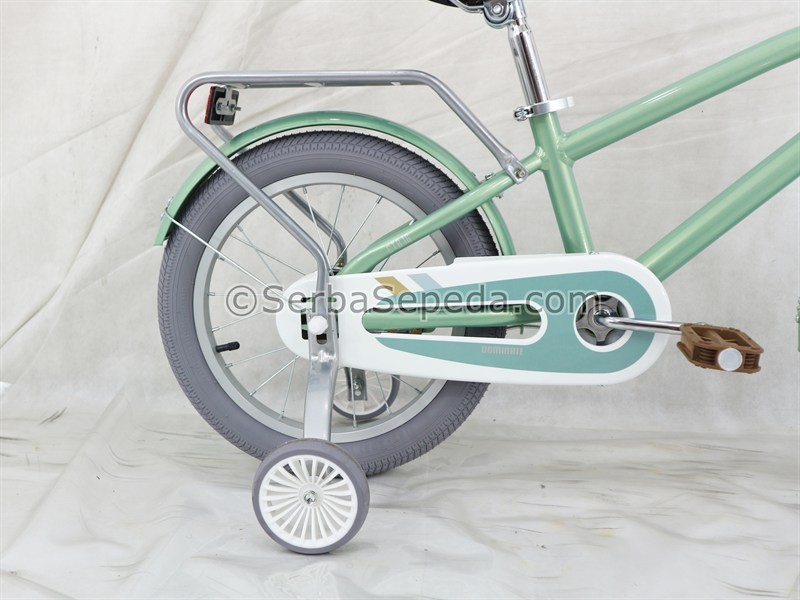 • Roda Bantu: Tambahan roda bantu di kiri dan kanan sepeda memudahkan anak-anak yang masih belajar bersepeda untuk menjaga keseimbangan dan mengurangi risiko jatuh.