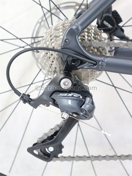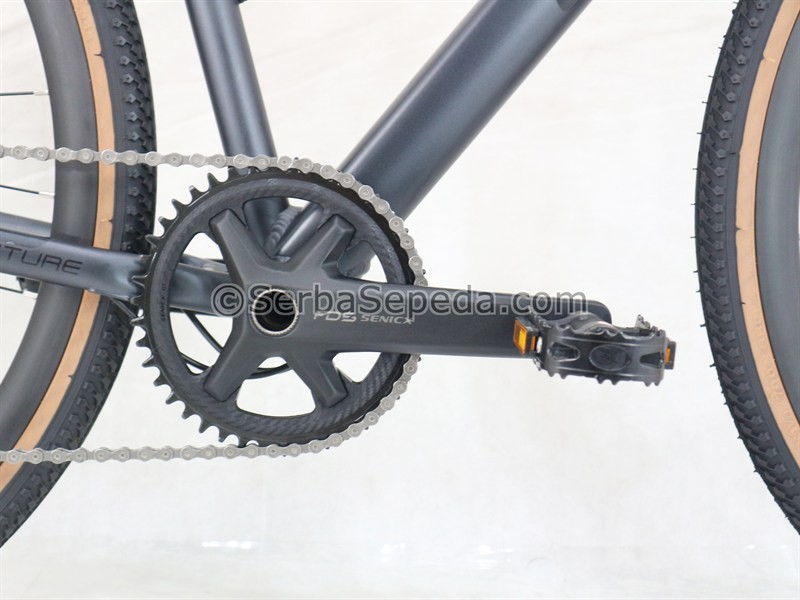 - Bahan frame alloy: Sepeda ini menggunakan bahan frame alloy, yang ringan dan tahan karat. Ini adalah fitur yang penting untuk sepeda gravel, karena dapat digunakan saat melalui berbagai medan tanah yang berbeda.