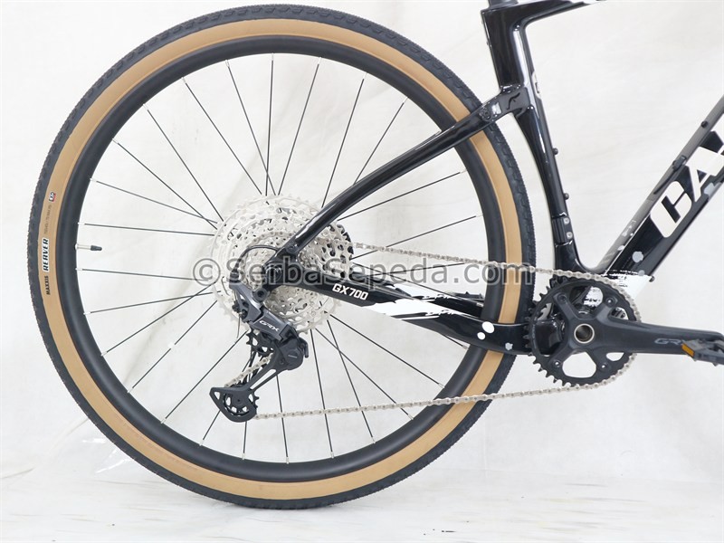 Bahan frame carbon : Sepeda ini menggunakan bahan frame carbon , yang sangat ringan dan tahan karat. Ini adalah fitur yang penting untuk sepeda gravel, karena dapat digunakan saat melalui berbagai medan tanah yang berbeda.