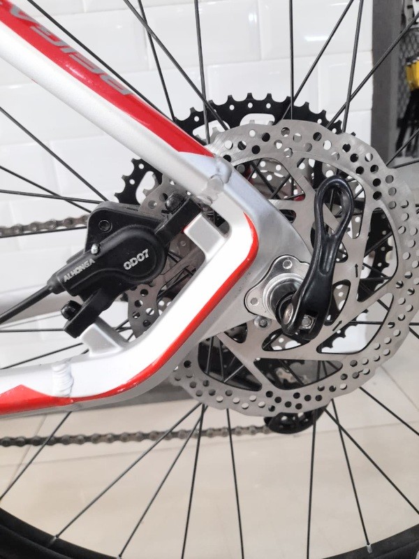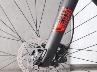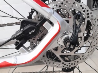 Rem cakram yang sangat pakem tanpa mengandalkan cengkeraman jari pada saat mengerem mendadak atau saat turunan tajam. Memakai teknologi hydraulic yang sama dengan pengereman kendaraan bermotor.