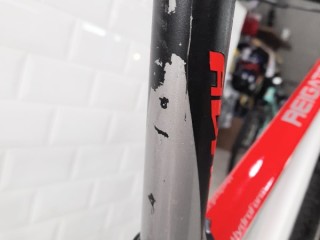 Menggunakan fork yang empuk dan tahan banting dari pabrikan Venom Air T120 Lockout. Dengan travel 120mm membuat posisi stang lebih tinggi sehingga postur pemakai dapat lebih tegak, selain tentunya menambah kesan gagah.