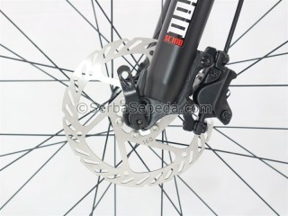 Rem cakram yang sangat pakem tanpa mengandalkan cengkeraman jari pada saat mengerem mendadak atau saat turunan tajam. Memakai teknologi hydraulic yang sama dengan pengereman kendaraan bermotor.
