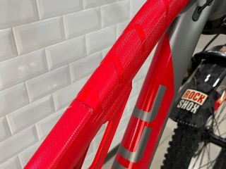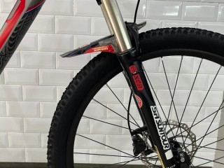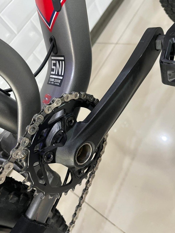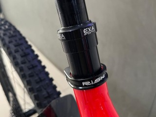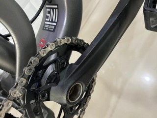 - Menggunakan fork Suntour XCR Air Suspension T120mm LO Boost, dengan travel 120mm membuat posisi stang lebih tinggi sehingga postur pemakai dapat lebih tegak, selain tentunya menambah kesan gagah.