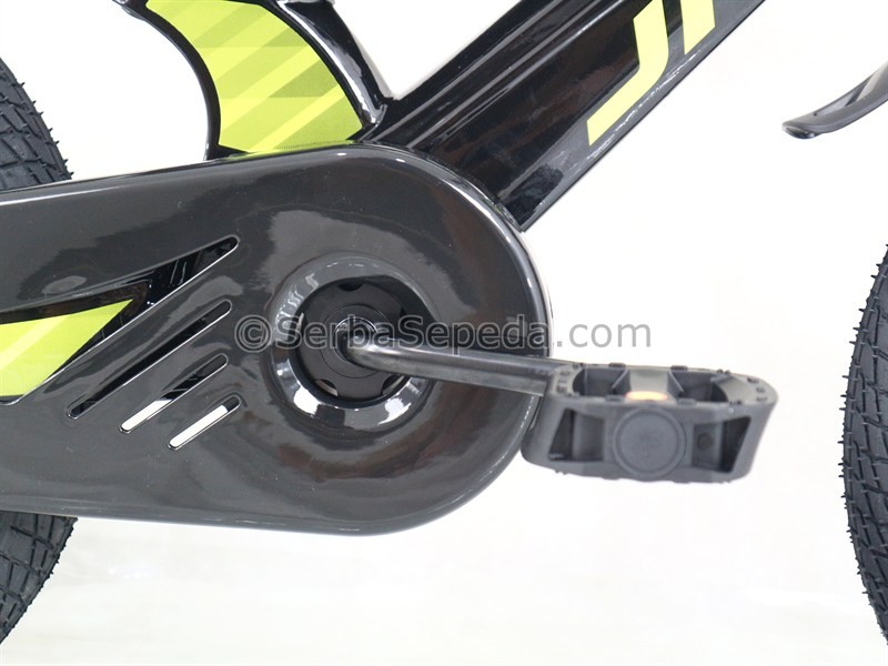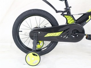 • Rangka Alloy Magnesium: Rangka sepeda ini terbuat dari bahan alloy magnesium yang ringan, tanpa proses las, lebih kuat dan tahan lama. Ini membuatnya dapat menahan berbagai tekanan dan benturan yang mungkin terjadi saat anak-anak sedang bersepeda.