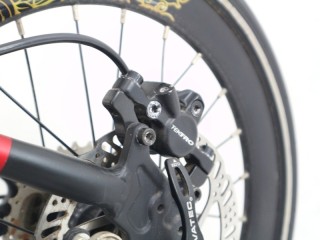 Rem cakram yang sangat pakem tanpa mengandalkan cengkeraman jari pada saat mengerem mendadak atau saat turunan tajam. Memakai teknologi hydraulic yang sama dengan pengereman kendaraan bermotor.