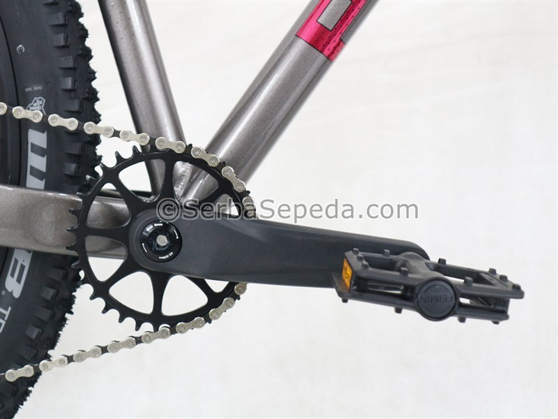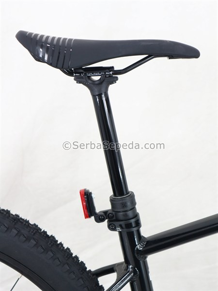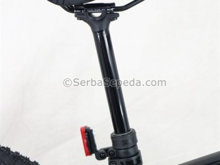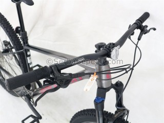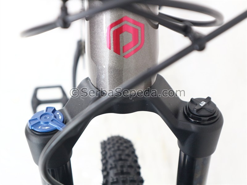 Menggunakan fork X-Fusion Mingo Air T120mm LO Boost Thru Axle, dengan travel 120mm membuat posisi stang lebih tinggi sehingga postur pemakai dapat lebih tegak, selain tentunya menambah kesan gagah.