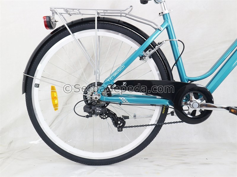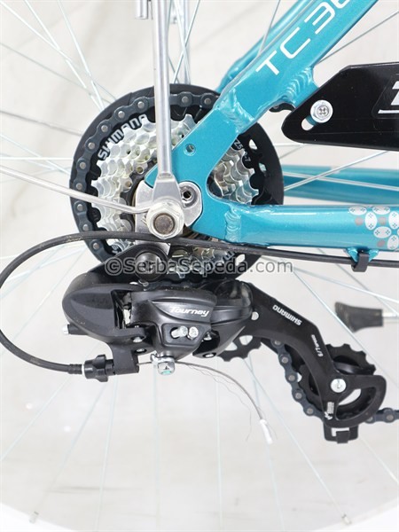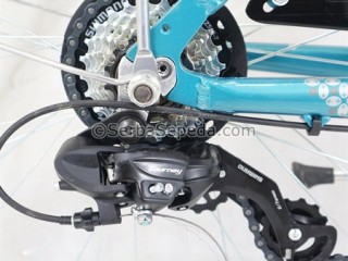• Memiliki 7 pilihan kecepatan dari Shimano, untuk menghadapi berbagai medan tanjakan dan memberi fleksibilitas dalam berkendara.