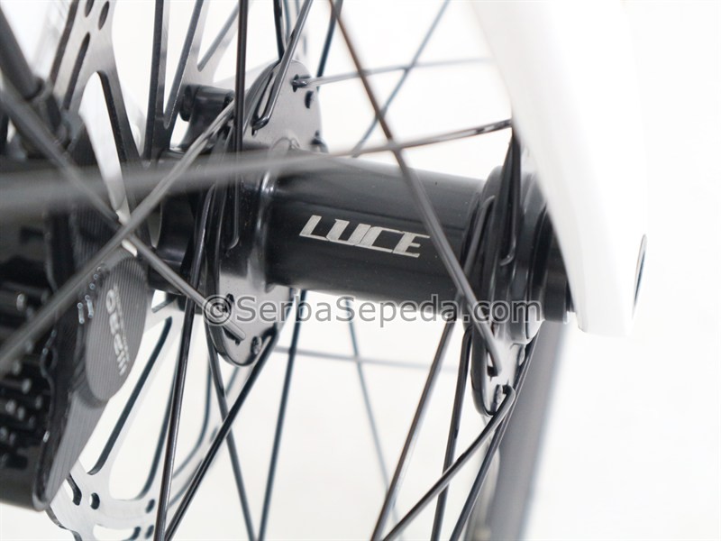 Rangka Alloy Ringan dan Tahan Karat: Rangka sepeda ini terbuat dari bahan alloy , yang terkenal karena ringan dan tahan terhadap karat. Ini membuat sepeda menjadi lebih tahan lama dan mudah untuk dibawa.