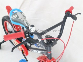 • Rangka Steel : Rangka sepeda ini terbuat dari bahan steel yang kuat dan tahan banting. Ini membuatnya dapat menahan berbagai tekanan dan benturan yang mungkin terjadi saat anak-anak sedang bersepeda.