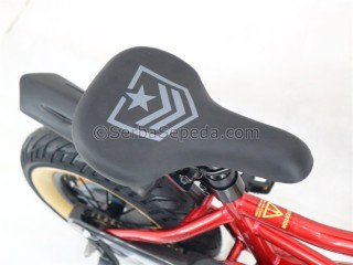 • Rangka Steel : Rangka sepeda ini terbuat dari bahan steel yang kuat dan tahan banting. Ini membuatnya dapat menahan berbagai tekanan dan benturan yang mungkin terjadi saat anak-anak sedang bersepeda.