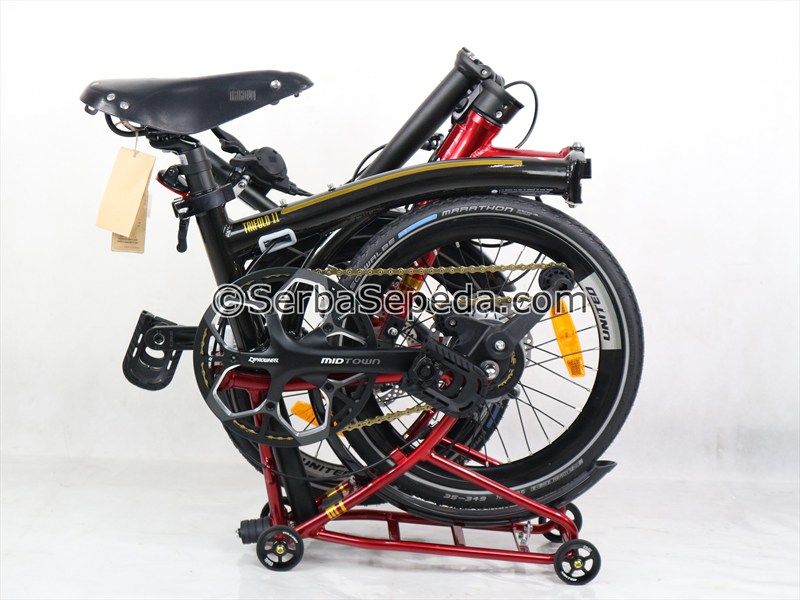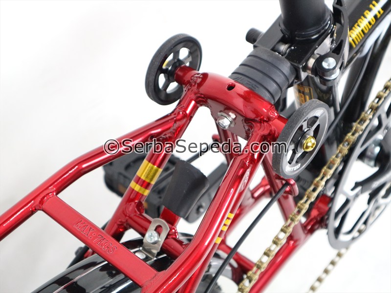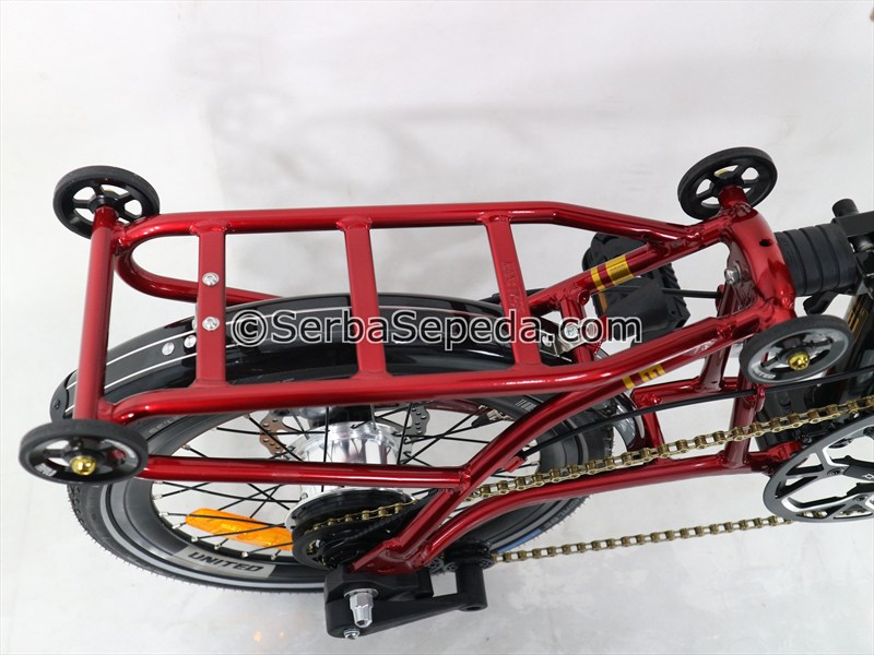 • Penyimpanan praktis dan ringkas karena sepeda bisa dilipat di bagian: rangka, stang dan pedal, dan roda belakang.